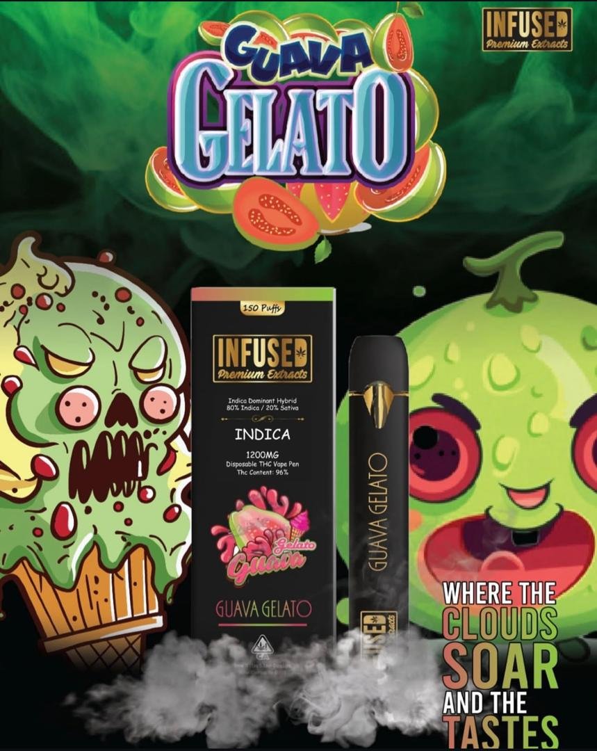 Guava Gelato Infused Premium Extracts Vape is a product aimed at the customers, who prefer having a sweet calming vape of indica, with high quality flavour and desired effect.